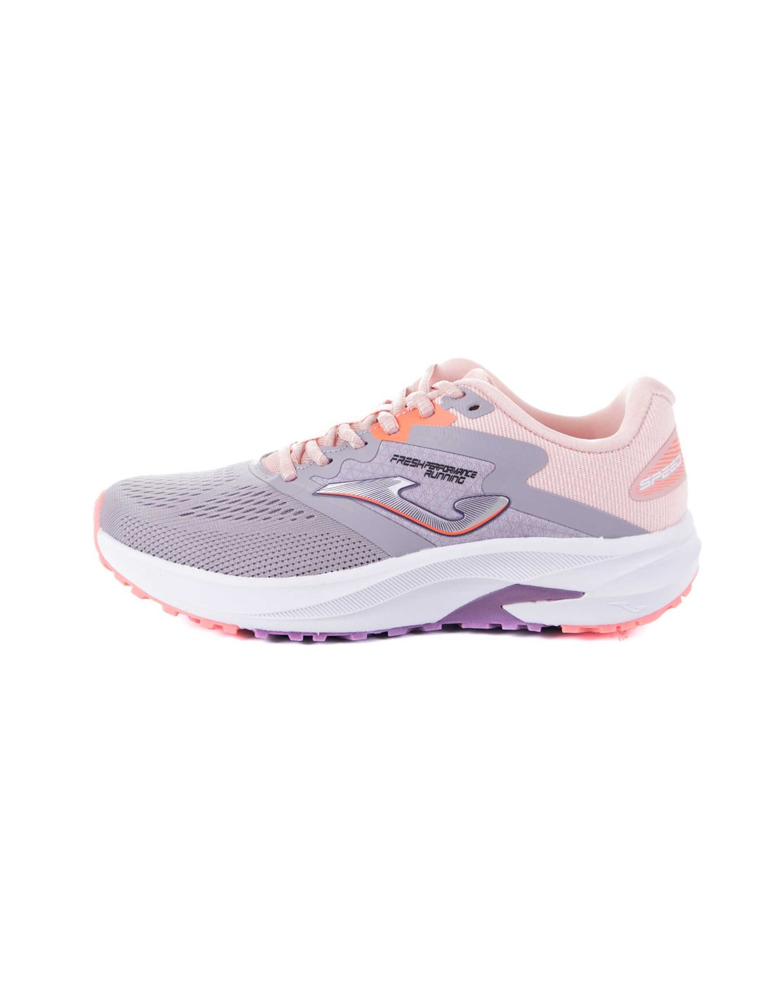 Zapatillas de running en color gris y rosa para mujer de la marca Joma. Este modelo resistente y ligero te otorgara toda la amortiguación que necesitas. Son ideales para tu entrenamiento diario. La parte superior está confeccionada con un tejido transpirable. El cuello y la lengüeta son acolchado para una comodidad total. Luce el logo de la marca en los laterales.